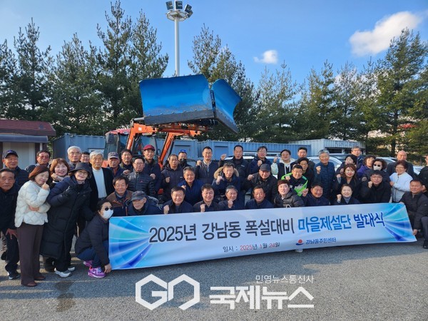 (강릉=국제뉴스) 장덕진 기자 = 강남동주민센터는 24일 변화하는 이상 기후에 대비하여 주민들의 안전과 재산을 보호하고자, 2025년 강남동 폭설대비 마을제설단 발대식을 시행했다.