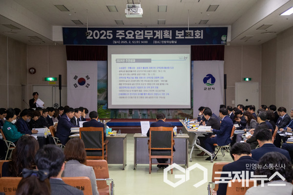 (군산=국제뉴스) 조판철 기자 = 군산시는 12일 시청 상황실에서 강임준 시장 주재로 2025년 주요 업무계획 보고회를 개최하고, 민선 8기 시정 운영 방향에 맞춰 핵심 정책과 중점 추진과제를 논의했다.