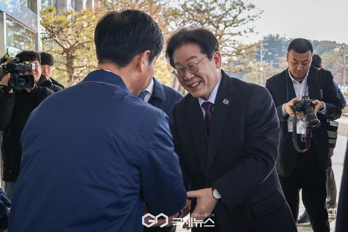 (아산=국제뉴스) 더불어민주당 이재명 대표가 20일 충남 아산시 현대자동차 공장을 방문해 이동석 사장(오른쪽)을 비롯한 현대자동차 관계자들을 격려하고 있다. /사진=원명국 기자
