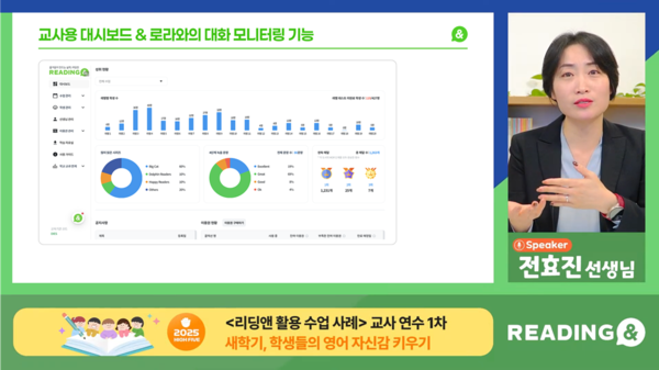 이번 연수에서는 현직 교사들에게 AI 데이터 기반의 학습 분석을 통한 학생 개인별 맞춤형 교수법 등을 배울 수 있는 기회가 제공된다. 특히 초.중.고 학생들의 수준이나 특성, 흥미 등에 따라 맞춤형 수업자료를 제공하고 성취 과정을 확인해볼 수 있는 학습관리시스템(LMS)의 활용법도 자세히 배울 수 있다. 또한 현직 초.중.고 교사들이 다양한 리딩앤 활용 수업 사례와 노하우를 서로 공유하고 AI 기반 미래 영어교육의 전문성과 네트워크를 강화할 수 있도록 도울 예정이다.