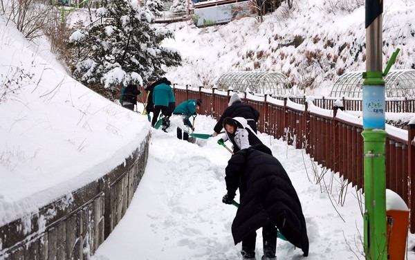 또한, 각 동 주민센터에서는 자체 보유 차량을 동원해 마을 안길과 제설 취약 구간 등에 대한 제설작업을 하고 있으며, 민간에서도 스스로 제설에 나서는 등 제설작업에 총력을 기울이고 있다.