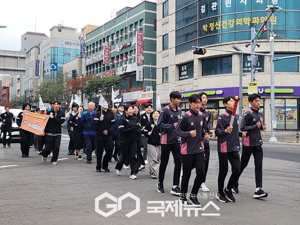 제주SK FC(이하 제주SK)가 제59회 제주도민체육대회와 2026년 전국체전 성공 개최를 기원하고 홈 경기 홍보를 위해 성화봉송에 참여해 축제 분위기를 조성했다.