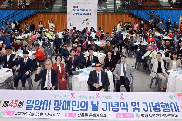 (밀양=국제뉴스) 안병곤 기자 = 밀양시는 25일 밀양문화체육회관에서 밀양시장애인총연합회 주관,‘제45회 장애인의 날 기념행사’를 개최했다고 밝혔다.