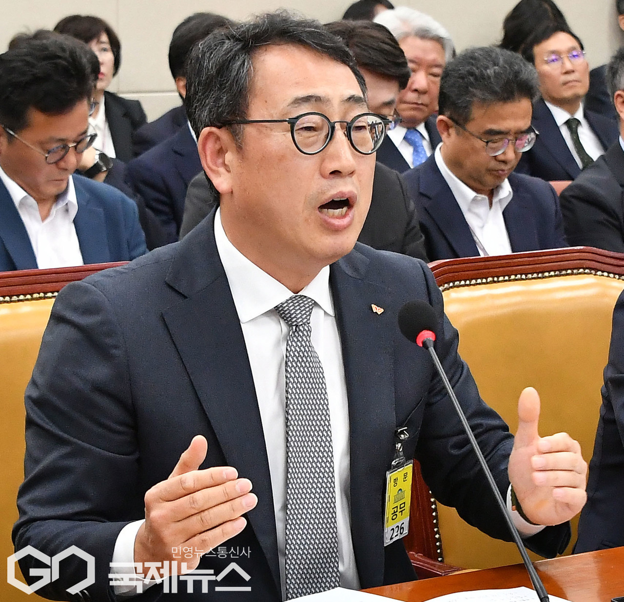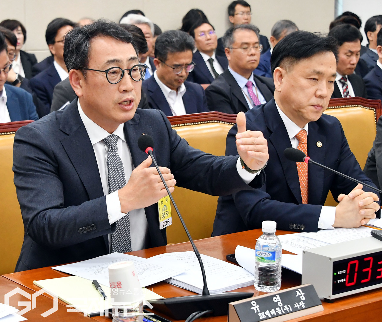 (서울=국제뉴스) 30일 오전 서울 여의도 국회에서 열린 과학기술정보방송통신위원회 전체회의 SKT해킹 및 YTN 등 방송통신분야 청문회에서 유영상 SKT텔레콤 사장이 최근 유심 해킹사태에 따른 의원질의에 답하고 있다./사진=이용우 기자