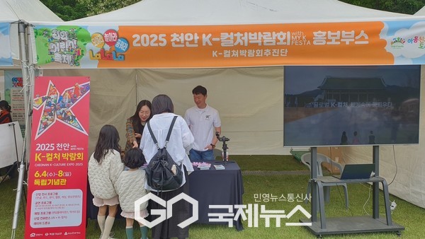 (천안=국제뉴스) 이원철 기자 = 7일 천안시는 지난 4일과 5일 각각 독립기념관 어린이날 행사와 제103회 천안시 어린이날 기념행사에서 K-컬처박람회 홍보부스를 열고 시민들과 방문객들을 대상으로 ‘2025 천안 K-컬처박람회’ 성공 개최를 위한 대대적인 홍보에 나섰다고 밝혔다.
