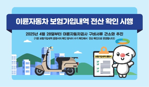 그동안 이륜차 소유주는 정기검사 시 의무보험가입내역 확인서를 별도로 제출해야 했으며, 이 과정에서 접수실 방문 및 수기 확인에 따른 대기시간 지연 등 불편이 지속되어 왔다.