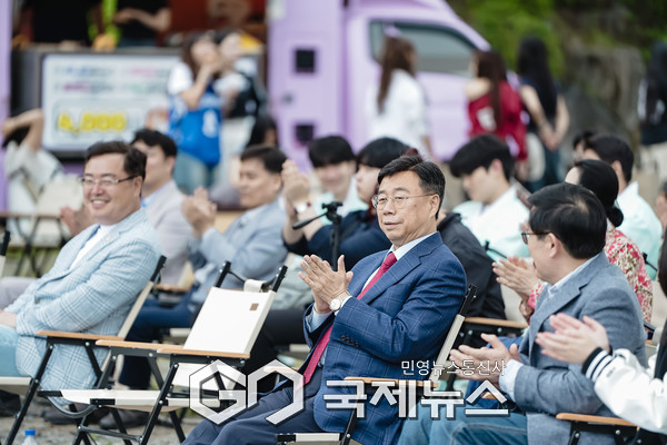 (성남=국제뉴스) 손창민 기자 = 신상진 성남시장이 19일 오후 1시 경기 성남시 수정구 동서울대학교 소운동장에서 열린 2025년 성년의날 기념식에 참석해 박수치고 있다.
