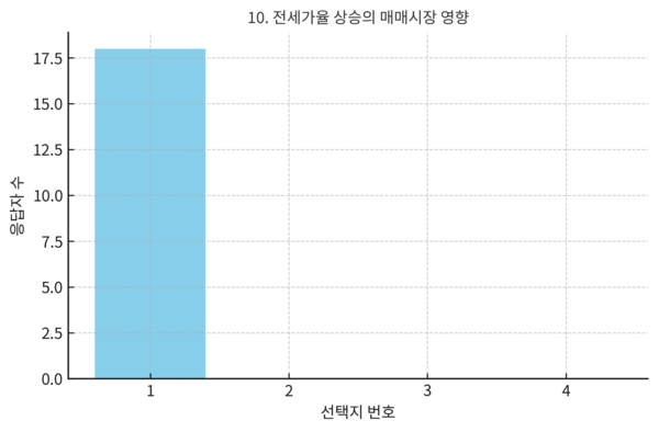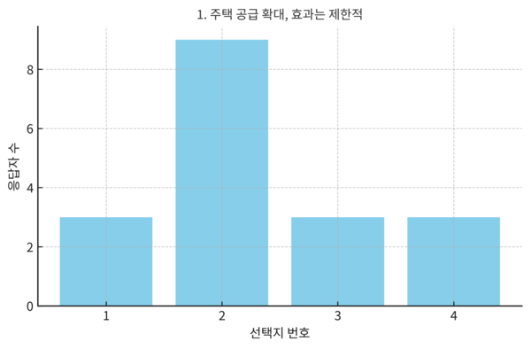 응답자의 절반인 9명이 "공급 확대가 제한적이어서 가격 상승 압력이 지속될 것"이라 답변. 공급 발표만으로는 실질 효과를 기대하기 어렵다는 현장 감각 반영.
