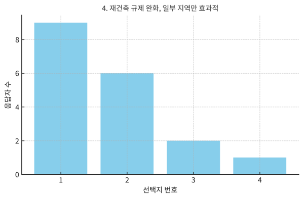자유의견을 통해 전문가들은 재개발·재건축 규제 완화가 사업 추진을 촉진할 수는 있지만, 조합 내부 갈등과 인허가 과정의 복잡성 등 현실적인 장애물이 여전히 존재한다고 지적했다.