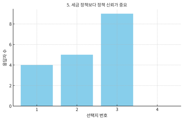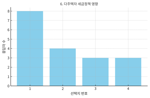 “세금 완화에도 불구하고 시장 반응은 제한적”이란 응답(5명)과 “세금 강화로 심리 위축”(9명)이 절반 이상. 단기 조치보다는 중장기 일관성 요구.