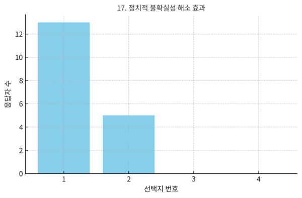 직접적인 도움이 된다는 의견이 9명으로 과반을 넘었지만, ‘일부 지역만 효과적’이라는 응답도 6명에 달해 균형 잡힌 시각 확인.