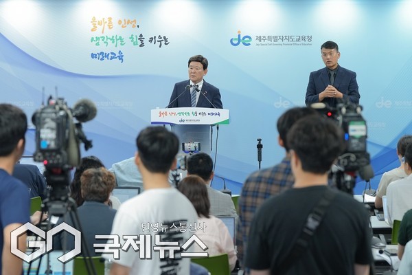 ![김광수 제주도교육감은 취임 3주년을 맞아 25일 오전 10시 제주도교육청 기자실에서 취임 기자회견을 열고 "지난 3년의 성과를 바탕으로 앞으로도 우리 아이들을 중심에 둔교육에 전념하고 모든 분들과 더욱 더 소통하고 협력해 나가겠다"는 의지를 피력했다.[사진=제주도교육청]](https://cdn.gukjenews.com/news/photo/202506/3308788_3426489_453.jpg)