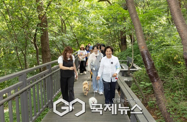 반려인 13명과 반려견 14마리가 무장애숲길 산책과 포토존 촬영 등 다양한 행사를 즐겼다. 김미경 구청장도 본인의 반려견과 함께 행사에 동참했다.