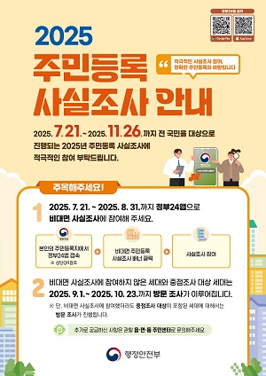 이번 조사는 주민등록법에 따라 주민등록의 정확성을 높이고자 추진된다.