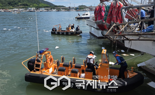 해경은 방제정, 연안구조정, 해양환경공단 등 가용세력을 총 동원해 방제작업에 나섰으며, 어선 주변에 퍼진 갈색유막(5m×100m)을 확인하고 유흡착재 40kg를 활용해 2시간에 걸쳐 긴급방제 작업을 완료했다.