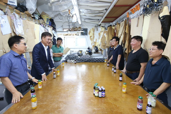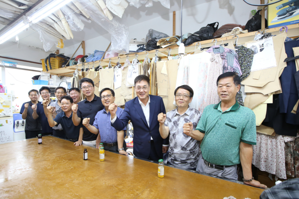 | 지난해 9월 관내 봉제사업장을 방문한 정문헌 종로구청장의 모습(사진=종로구청 제공) | |