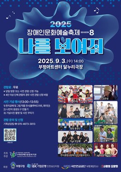 (인천=국제뉴스) 이병훈 기자 = 인천 부평장애인종합복지관은 오는 9월 3일 부평아트센터 달누리극장에서 2025년 장애인문화예술축제 ‘나를 보여줘-시즌8’을 개최한다.
