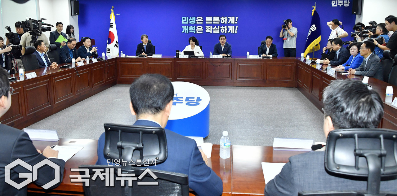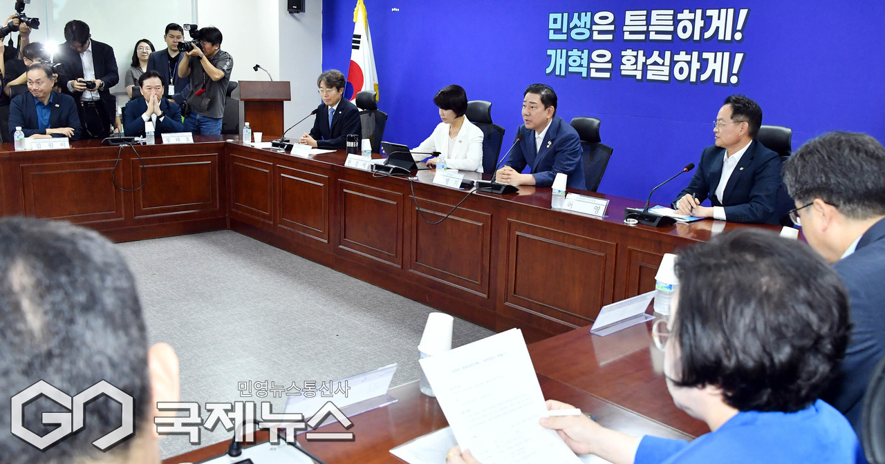 (서울=국제뉴스) 김병기 더불어민주당 원내대표가 20일 오전 서울 여의도 국회 의원회관에서 열린 '새정부 경제성장전략 당정협의회'에서 발언을 하고 있다./사진=이용우 기자