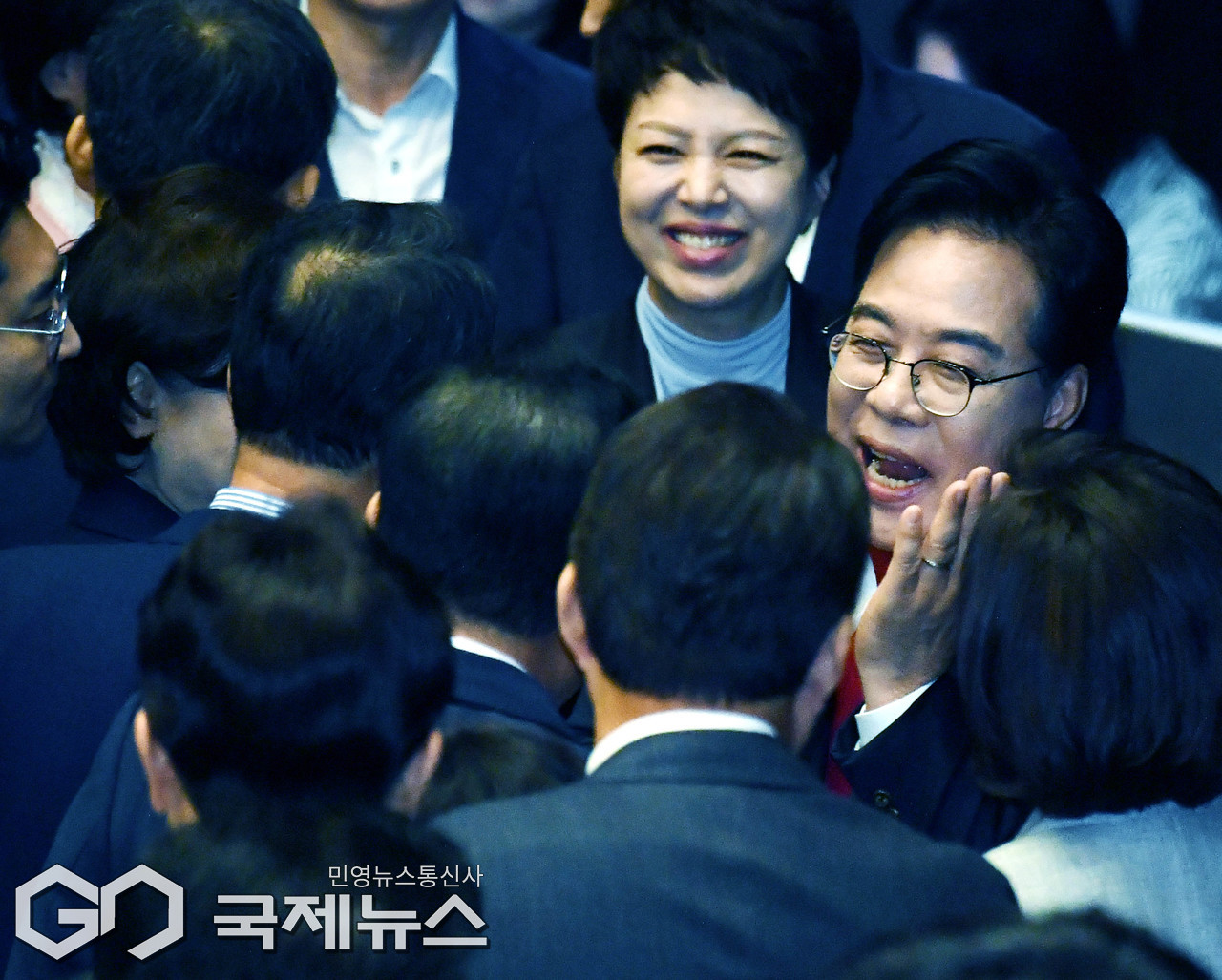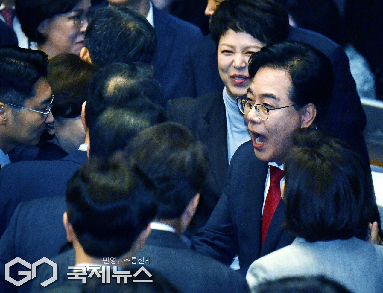 (서울=국제뉴스) 송언석 국민의힘 원내대표가 10일 오전 서울 여의도 국회에서 열린 제429회국회(정기회) 제3차 본회의에서 국정에 관한 교섭단체 대표연설을 마친 후 의원들과 인사하고 있다./사진=이용우 기자