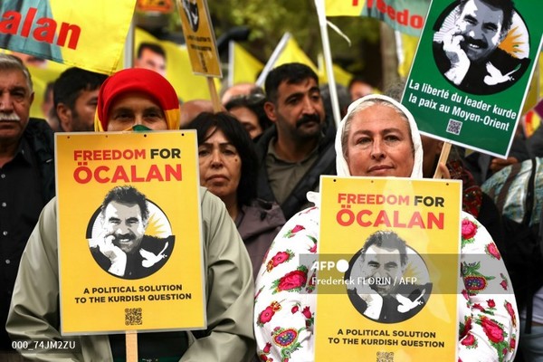 시위 참가자들은 외잘란이 부당하게 구금돼 있다고 주장하며 그의 즉각적인 석방을 요구했다.