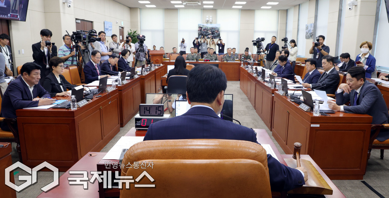 (서울=국제뉴스) 성일종 국회 국방위원장이 29일 서울 여의도 국회에서 열린 제429회 국회(정기회) 국방위원회 제4차 전체회의에서 의사봉을 두드리고 있다./사진=이용우 기자