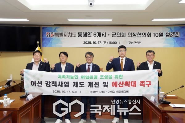 (양양=국제뉴스) 장덕진 기자 = 강원특별자치도 동해안 6개 시.군의회 의장협의회(회장 이종석 양양군의회의장, 이하 협의회) 10월 정례회가 17일 고성군의회에서 개최되었다.