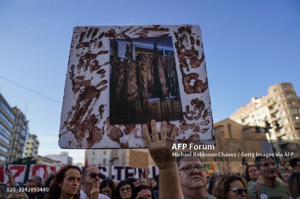 이들은 발렌시아 주에서 220명 이상이 사망한 이번 재난에 대해 카를로스 마손 발렌시아 정부 수반의 사임을 요구하며 거리를 행진했다.