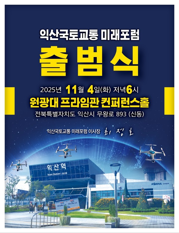 ‘익산국토교통 미래포럼(이사장 최정호) 출범식’이 오는 11월 4일 오후 6시 원광대학교 프라임관 컨퍼런스홀에서 개최된다.