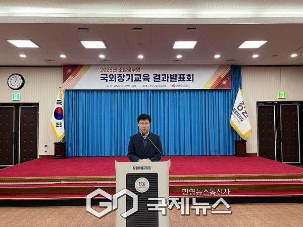 (춘천=국제뉴스) 최옥현 기자 = 강원특별자치도 소방본부는 2025년 국외장기교육을 마친 소방공무원들의 연구 성과를 공유하고 해외 선진 소방정책 도입 가능성을 논의하기 위해 '2025년 국외장기교육 결과발표회'를 개최했다고 밝혔다.