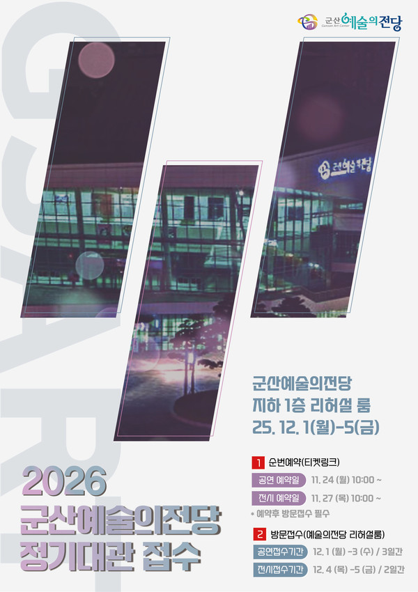 (군산=국제뉴스) 조판철 기자 = 군산예술의전당이 지역예술인과 공연·전시단체를 대상으로 2026년도 정기대관 신청을 받는다.