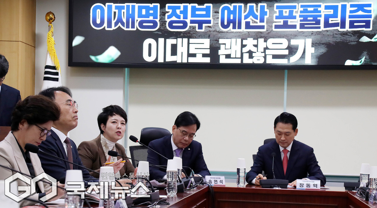 (서울=국제뉴스) 김은혜 국민의힘 원내정책수석부대표가 20일 서울 여의도 국회 의원회관에서 열린 '이재명 정부 예산 포퓰리즘 이대로 괜찮은가' 토론회에서 인사말을 하고 있다./사진=이용우 기자