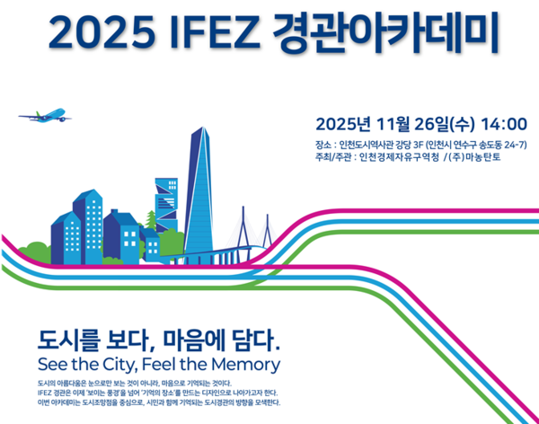 (인천=국제뉴스) 이병훈 기자 = 인천경제자유구역청은 오는 11월 26일, 인천도시역사관에서 ‘도시를 보다, 마음에 담다(See the City, Feel the Memory)’를 주제로 2025 IFEZ 경관아카데미를 개최한다.