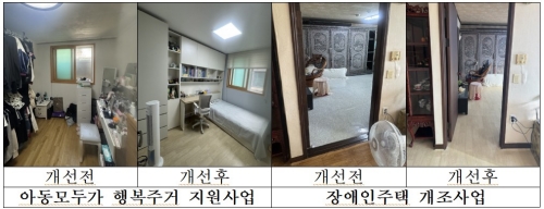 '아동모두가 행복주거 지원사업'은 아동주거빈곤가구를 대상으로 협소 공간 효율성 제고, 필수설비 설치, 구조·성능 및 환경기준 개선, 사례관리 등을 지원하는 사업으로서, 올해 선정 가구는 아동 독립공간 조성, 아동방 내 설치돼 있던 가스 배관 이설, 냉방기 등을 지원받아 주거 안전성과 편리함이 크게 개선됐다.