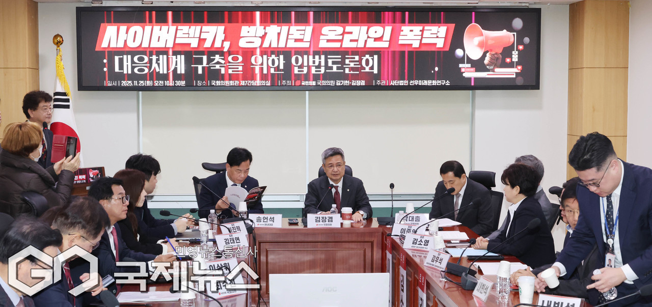 (서울=국제뉴스) 김장겸 국민의힘 의원이 25일 서울 여의도 국회 의원회관에서 열린 사이버렉카 대응체계 구축 위한 입법토론회에서 인사말을 하고 있다./사진=이용우 기자