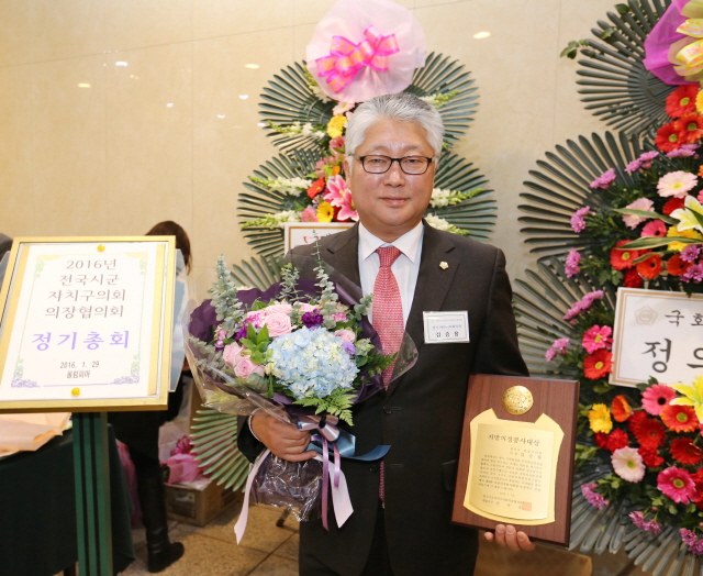 (하남=국제뉴스) 김홍현 기자 = 하남시의회는 김승용 의장이 29일 올림픽파크텔에서 개최된 '전국시군자치구의회 의장협의회 2016년도 정기총회'에서 '제8회 지방의정봉사대상'을 수상했다고 밝혔다.