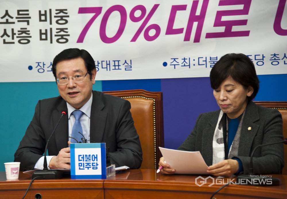(서울=국제뉴스) 하성인 기자 = 2일 오전 서울 여의도 국회 더불어민주당 대표실에서 이용섭 총선정책공약단은 기자회견을 통해 '777플랜'으로 양극화 해소를 4.13 총선정책공약으로 내걸었다.