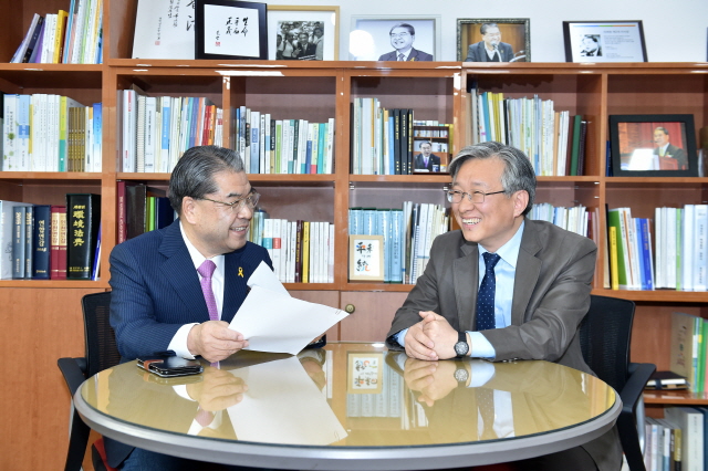(화성=국제뉴스) 조현철 기자 = 권칠승 화성병 국회의원 후보는 30일 경기도교육청에서 이재정 교육감과 만나 경기도의 교육재정의 위기와 화성시 교육 현안에 대해 심도 있는 대화를 나눴다.