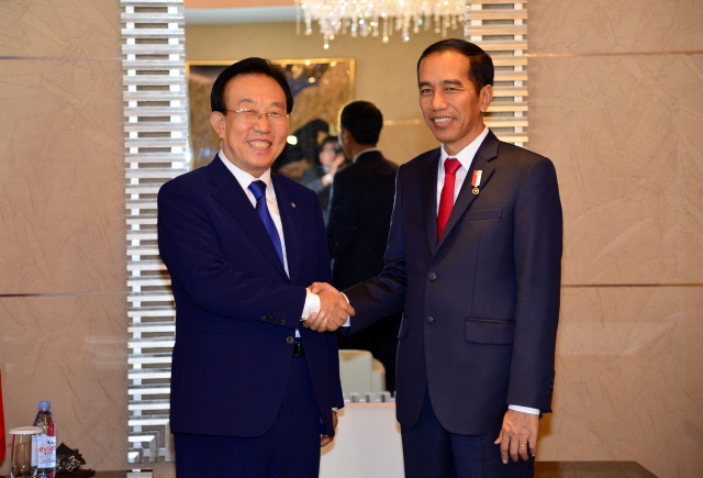 (경북=국제뉴스) 김용구 기자 = 김관용 경상북도지사는 지난 17일 박근혜 대통령의 초청으로 한국을 국빈 방문한 조코 위도도(Joko Widodo) 인도네시아 대통령과 면담을 가졌다.