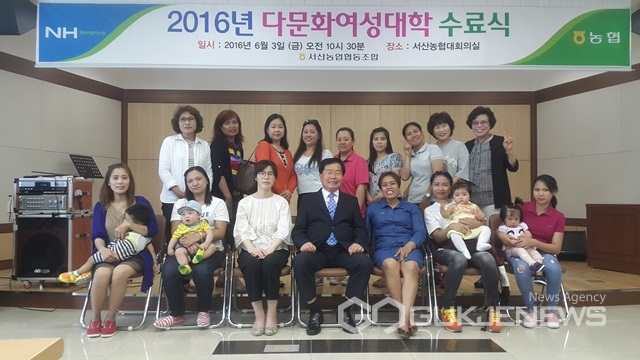 (서산=국제뉴스) 최병민 기자 = 농협 서산시지부(지부장 이명기)는 6일 서산농협에서 결혼이민여성 교육생 17명의 다문화여성대학 수료식을 가졌다고 7일 밝혔다.