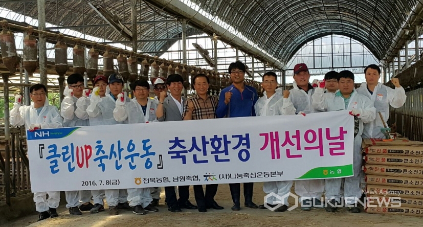 (전주=국제뉴스) 오승권 기자 = 전북농협은 8일 남원축협 임직원과 함께 남원시 대산면 소순택씨 축산농가에서 ‘클린업 축산환경개선 운동’의 일환으로 농장주변 클린 활동에 구슬땀을 흘렸다.