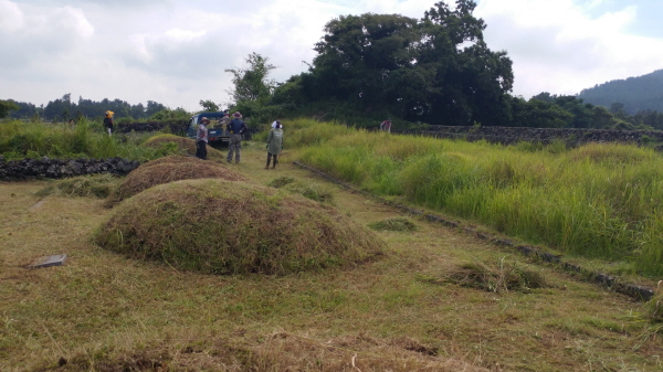 (제주=국제뉴스) 고나연 기자 = 4일 제주도 전역에 추석을 앞둬 막바지 벌초행렬이 이어졌다. 마을별 공동묘지에는 이른 아침부터 성묘를 위한 벌초행렬이 계속 이어졌다.