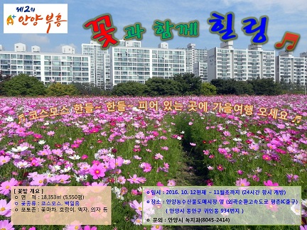 이필운 안양시장은 "현재 이 곳은 만발한 코스모스가 파란 가을 하늘과 앙상블을 이뤄 멋진 풍광을 연출하고 있다"며 "지금 바로 현장으로 가면 코스모스를 만끽할 수 있다"고 말했다.