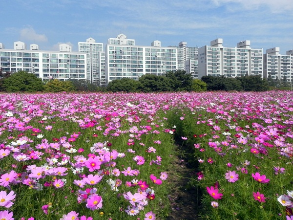 시는 백일홍과 메밀꽃, 해바라기 등으로 꽃동산을 조성해오다가 지난 8월에 가을꽃으로 대표되는 코스모스를 집중 파종했다.