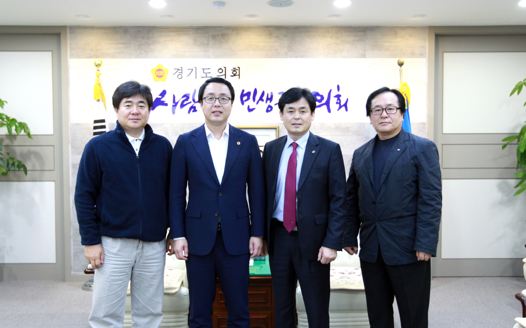 (수원=국제뉴스) 김홍현 기자 = 정기열 경기도의회 의장(더불어민주당, 안양4)은 27일 경기도의회 의장 접견실에서 영토지킴이 독도사랑회 길종성 이사장, 정광태 명예회장, 이청 독도홍보대사를 만났다.