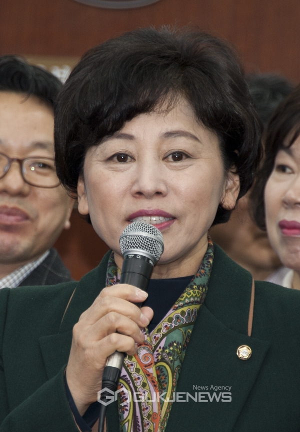 (서울=국제뉴스) 하성인 기자 = 6일 오전 서울 여의도 국회 더불어민주당에서 열린 120다산콜센터 상담사 직고용 축하 상생 꽃 달기 행사가 열린 가운데, 남인순의원이 성과를 보고 하고 있다.