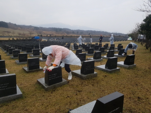 (제주=국제뉴스) 고나연 기자 = 제주 4·3 희생자유족청년회는 26일 평화공원 내 설치된 행방불명 희생자 표석을 닦는 봉사활동을 전개했다.