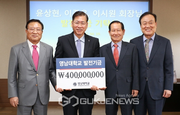 (대구=국제뉴스) 백운용 기자 = 영남대 동문들이 모교와 후배들을 위해 써달라며 무려 4억 원의 발전기금을 한꺼번에 기탁했다.
