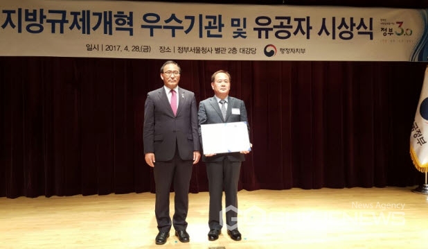 또한 지난 2015년 대통령 기관표창, 2016년 행정자치부장관 기관표창을 받은데 이어 금년에도 우수기관으로 선정, 행정자치부장관 기관표창을 받아 3년 연속 규제개혁 추진의 우수성을 인정받았다.