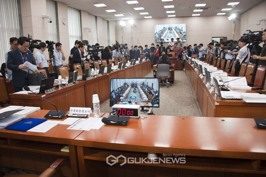 (서울=국제뉴스) 하성인 기자 = 14일 오전 서울 여의도 교육문화체육관광위원회(위원장 유성엽의원)에서 열릴 예정인 도종환 문체부 장관 후보자에 대한 청문회가 열렸으나, 자유한국당의원들의 불참으로 정회를 선언, 청문의원들이 모두 퇴장했다.