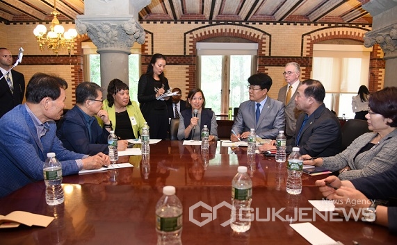 (제천=국제뉴스) 김상민 기자 = 전국평생학습도시협의회 대표단 39명과 함께 미국 방문 첫날 뉴욕 시청을 방문해 ELIZABETH ROSE 부교육청장 등과 간담회를 개최했다.